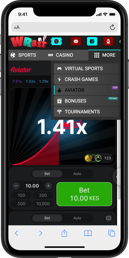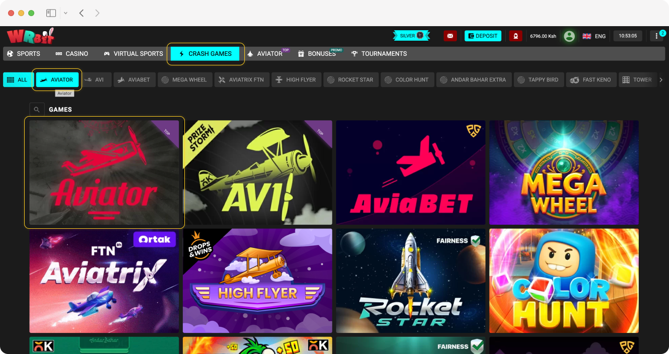 Open the “Crash Games” section in the WRBet Kenya menu.