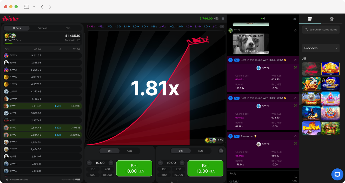 A player from Nairobi caught an incredible x450 multiplier.